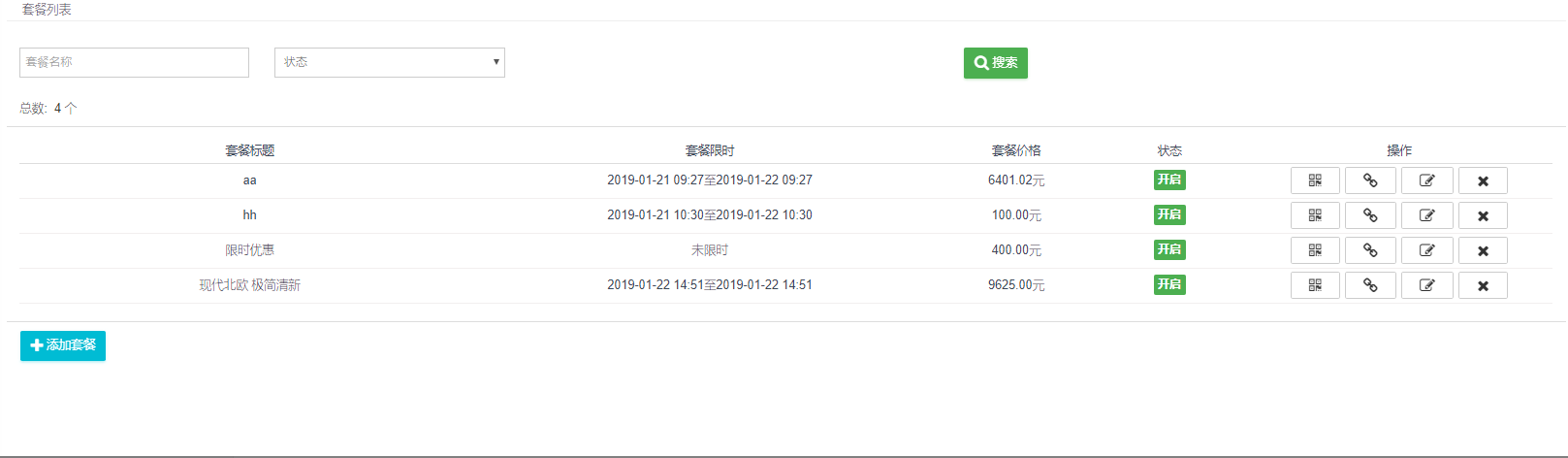2、管理列表:套餐基本信息