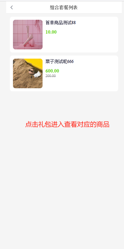 选择样式1,前端点击立即兑换,下单套餐设置的所有商品,若商品有规格则默认第一个规格 。